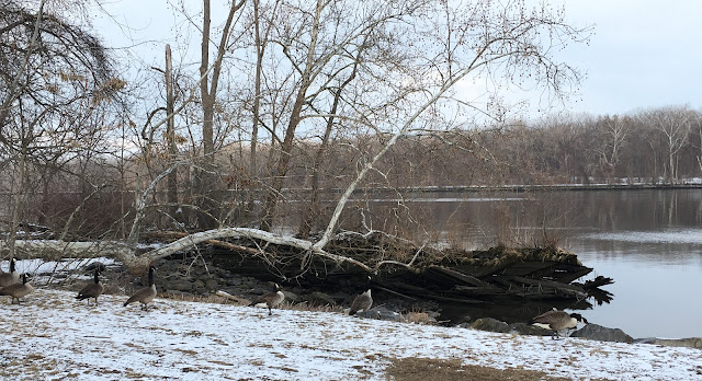 The slanted afternoon sun came in and out of the clouds as I walked along the river enjoying the crunch of the light snow underfoot and the towering cotton woods above. What massive trees. With the erosion along the shoreline, a couple are just about ready to fall into the water.